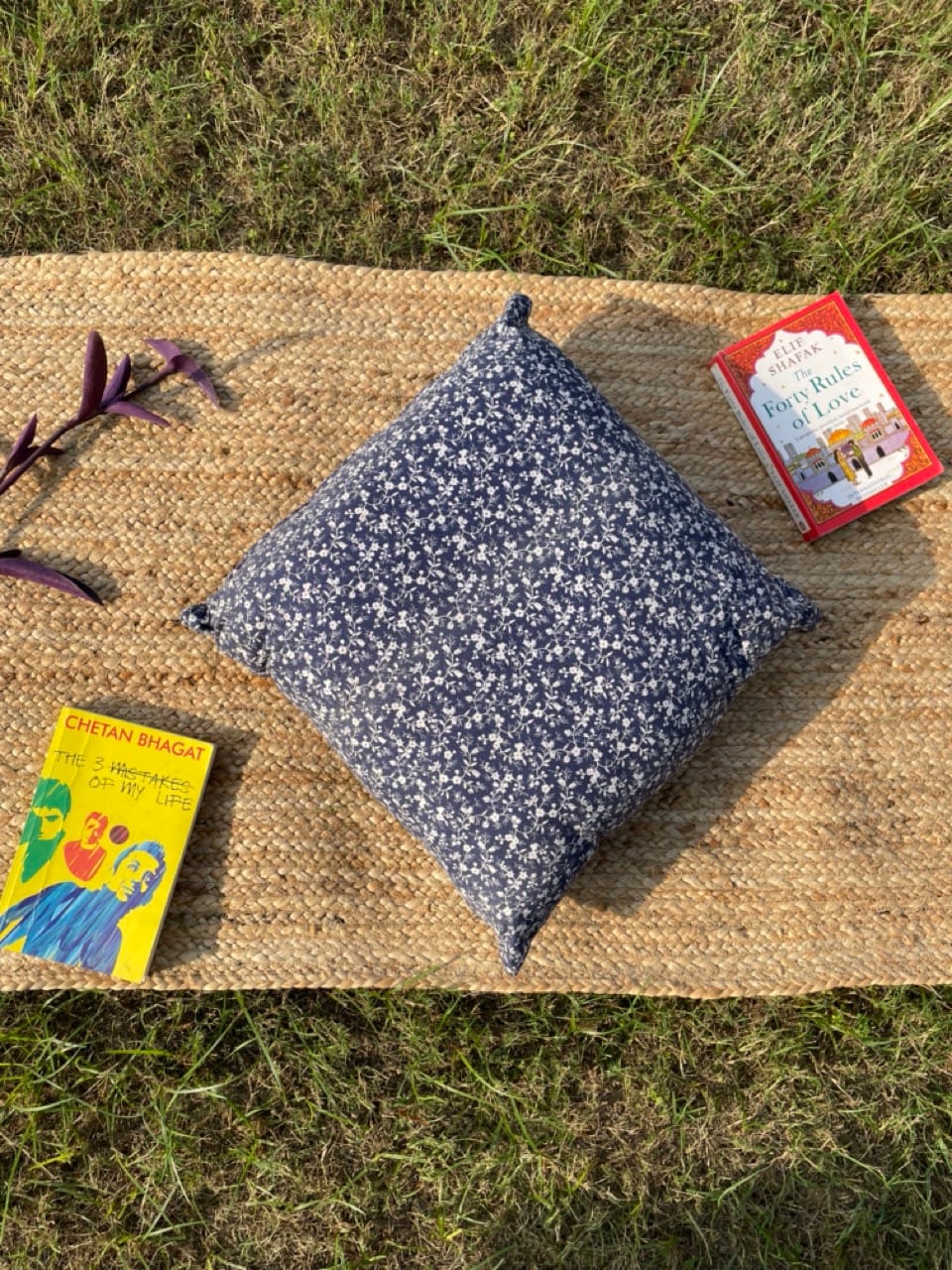 With its blue with white floral pattern finish, this cushion is one-of-a-kind, adding both comfort and character to your space. Choosing this sustainable cushion means supporting artisan livelihoods while embracing eco-friendly living.