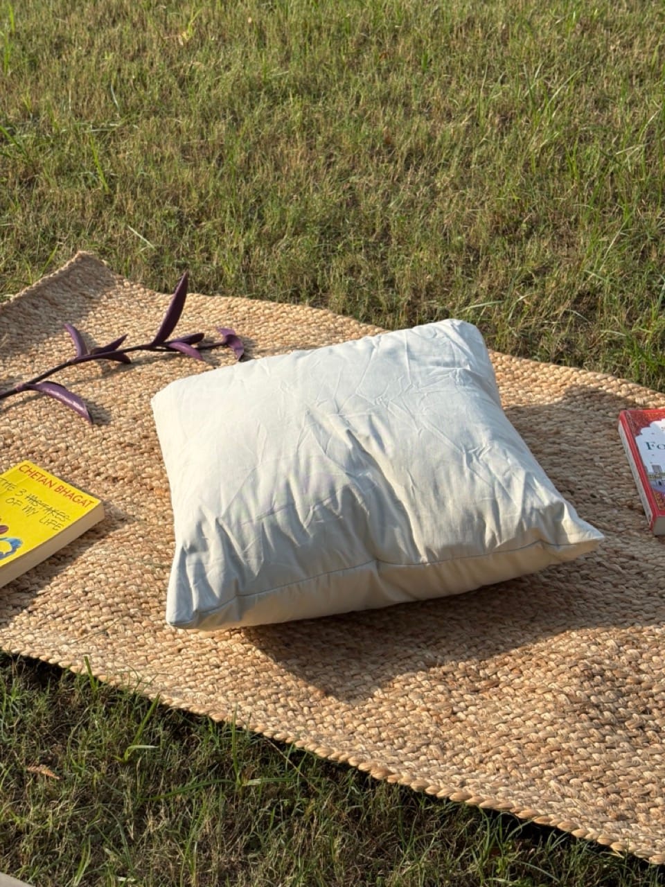 With its classic white finish, this cushion is one-of-a-kind, adding both comfort and character to your space. Choosing this sustainable cushion means supporting artisan livelihoods while embracing eco-friendly living.