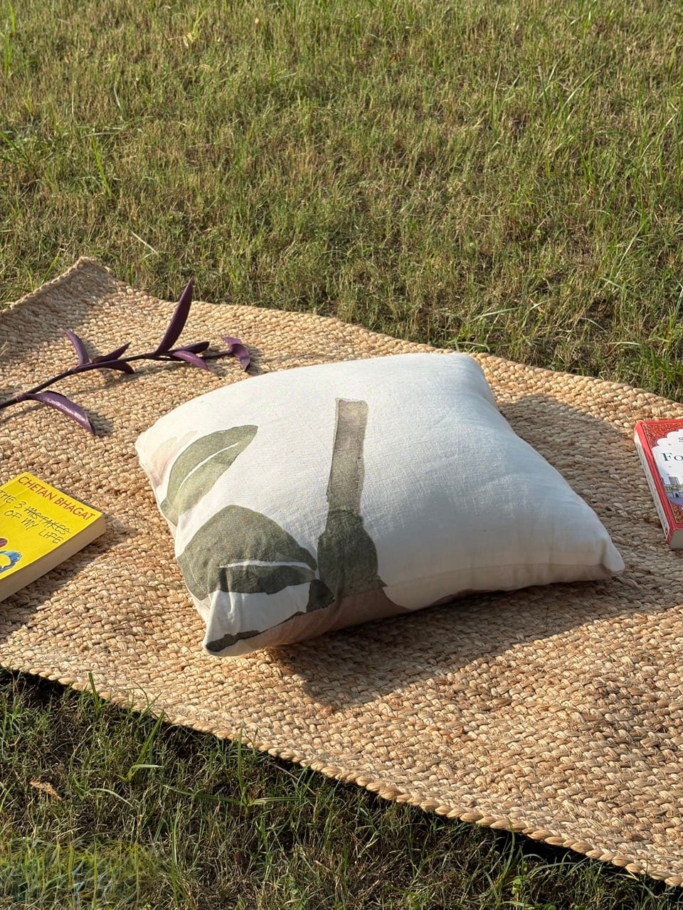 With its white, floral hue finish, this cushion is one-of-a-kind, adding both comfort and character to your space. Choosing this sustainable cushion means supporting artisan livelihoods while embracing eco-friendly living.