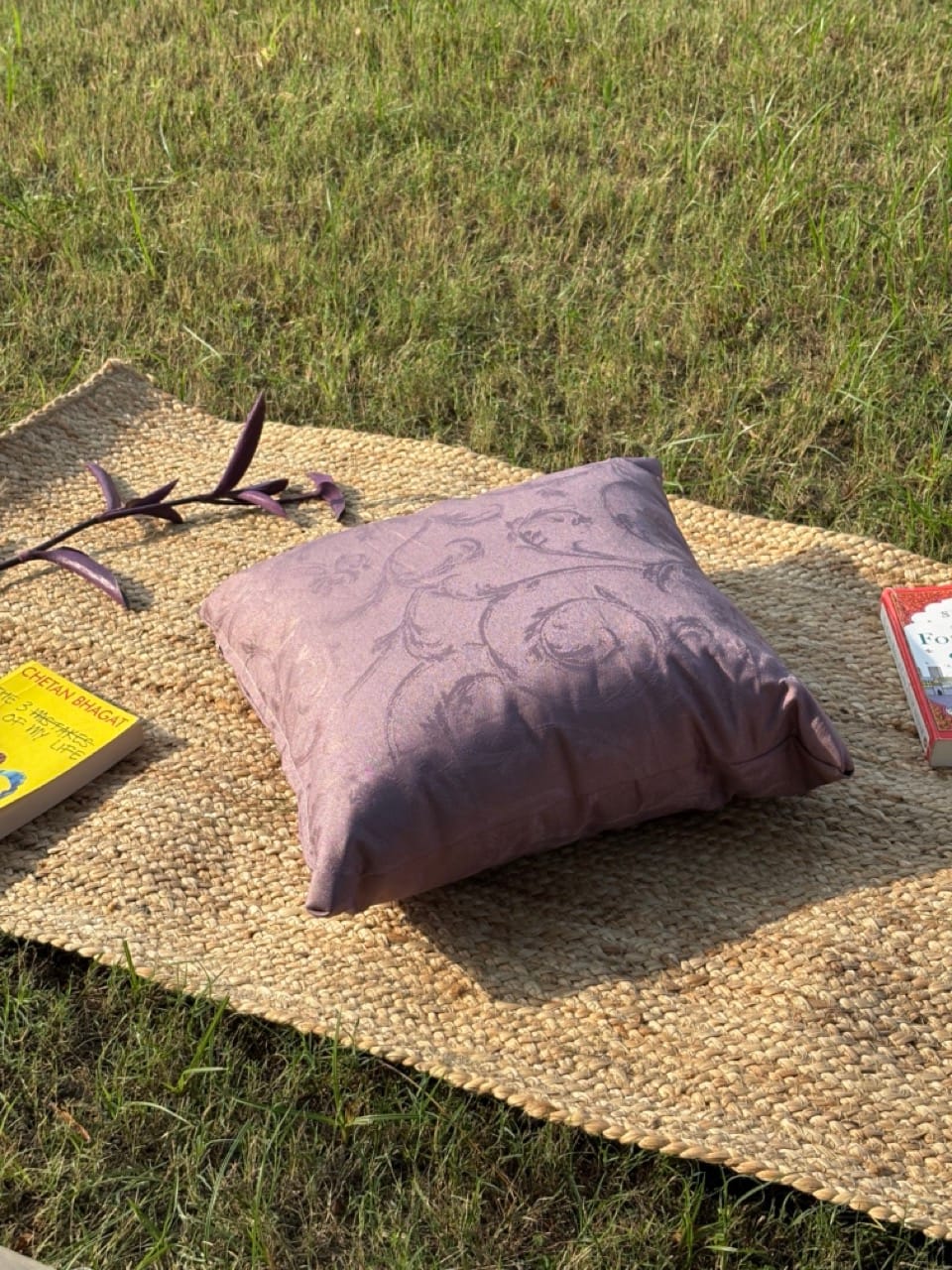 With its lilac-patterned finish, this cushion is one-of-a-kind, adding both comfort and character to your space. Choosing this sustainable cushion means supporting artisan livelihoods while embracing eco-friendly living.