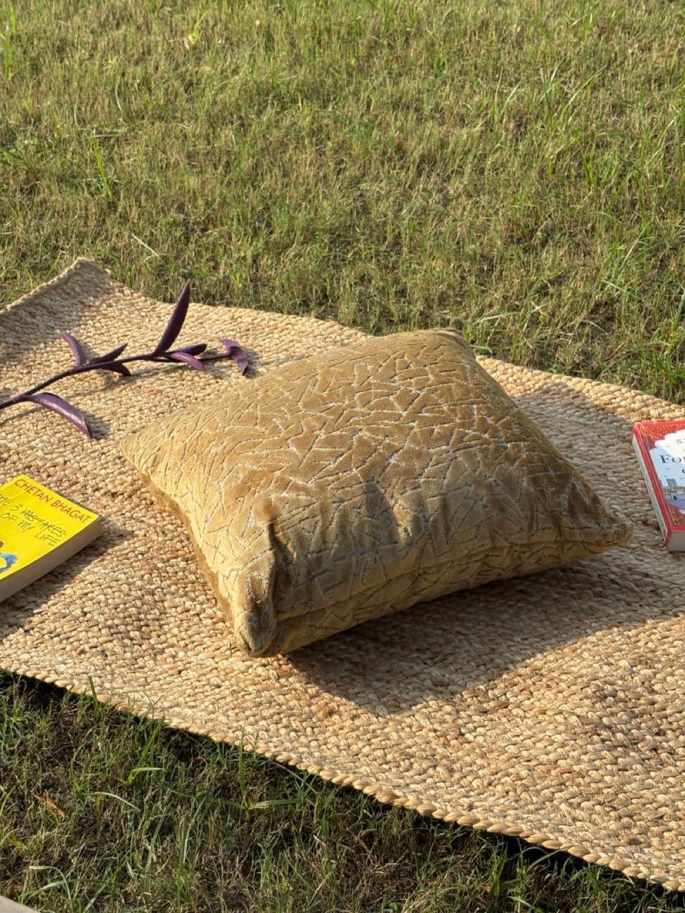 With its mustard-patterned finish, this cushion is one-of-a-kind, adding both comfort and character to your space. Choosing this sustainable cushion means supporting artisan livelihoods while embracing eco-friendly living.